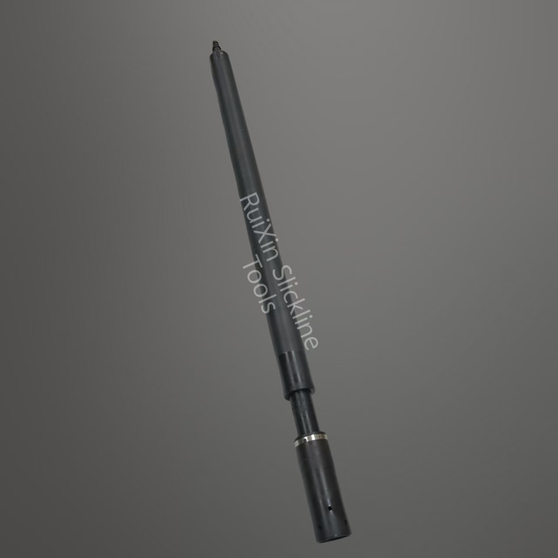 The dump bailer is Connect with the tool string used to pour acid, mercury and other liquids onto the top of any device in the wellbore. When operating, strike downward to cut the pin and break the baffle to allow the liquid to flow out.